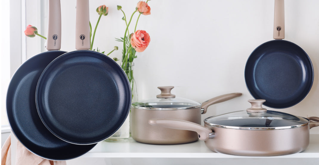 Not a fan of spending hours in the kitchen? This collection has everything you need to make your life easy. Thanks to the cool handle you don't need pot holders, and the seamless inside makes washing up a breeze!